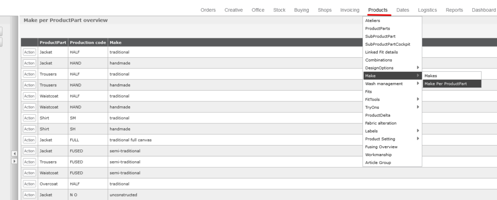 User has to navigate to Products-> Makes-> Make PerProduct Part Overview.