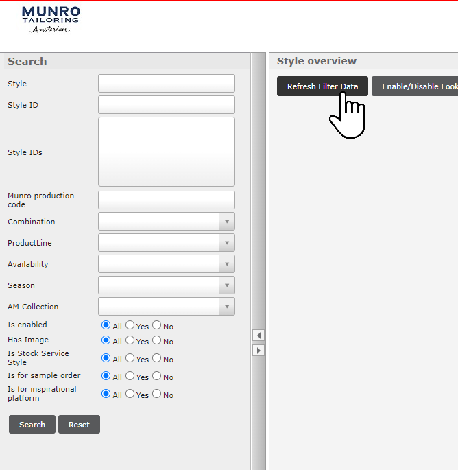 e) Update the filter data from the Style overview page.